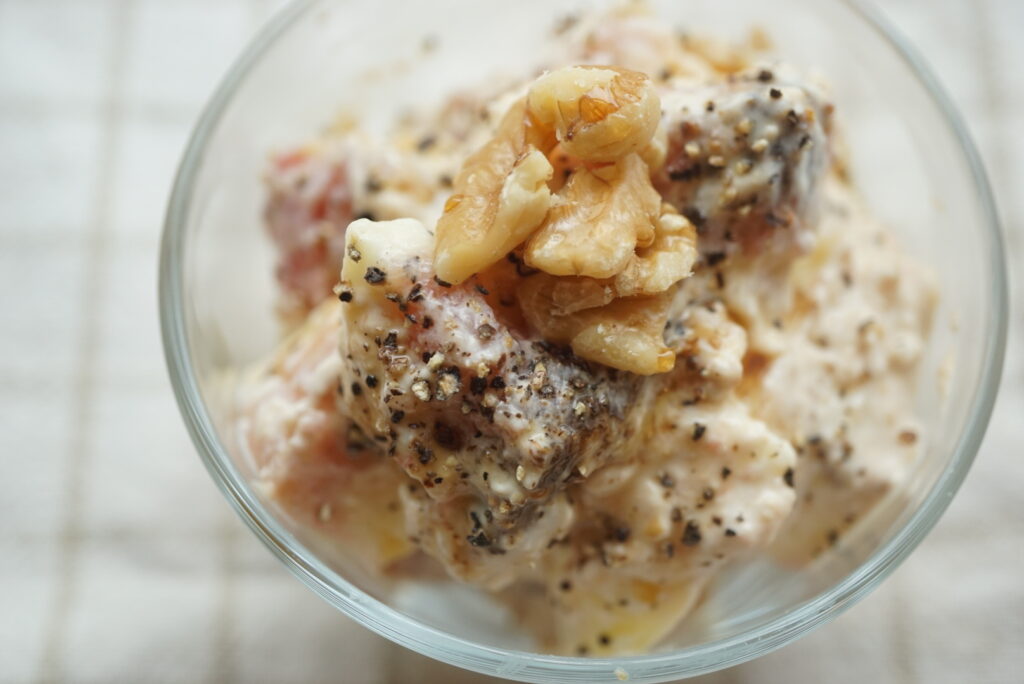 試作を兼ねた先日の朝ごはん♩季節の果物とみりん粕のデザートサラダ♩