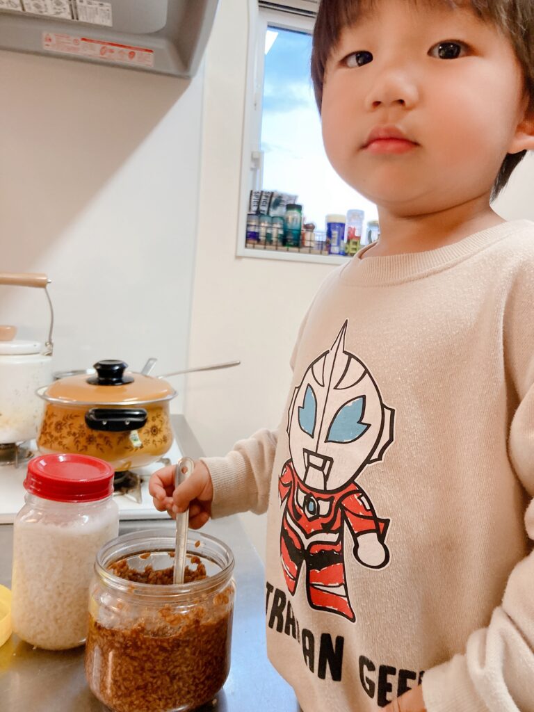 春休みは一緒に仕込んだ醤油麹も育てます。甘酒も一緒に作りました。
