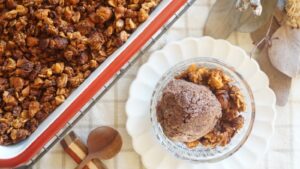 焼き立ての甘酒グラノーラと、みりんと甘酒の発酵チョコアイス♩あったかコーヒーと一緒に、ホッとひと息おやつの時間です。 あったかいとひんやりの甘いコラボは、こんなにさむい冬の日でも、ダイエット中でも止まらない。(笑) 今日 […]