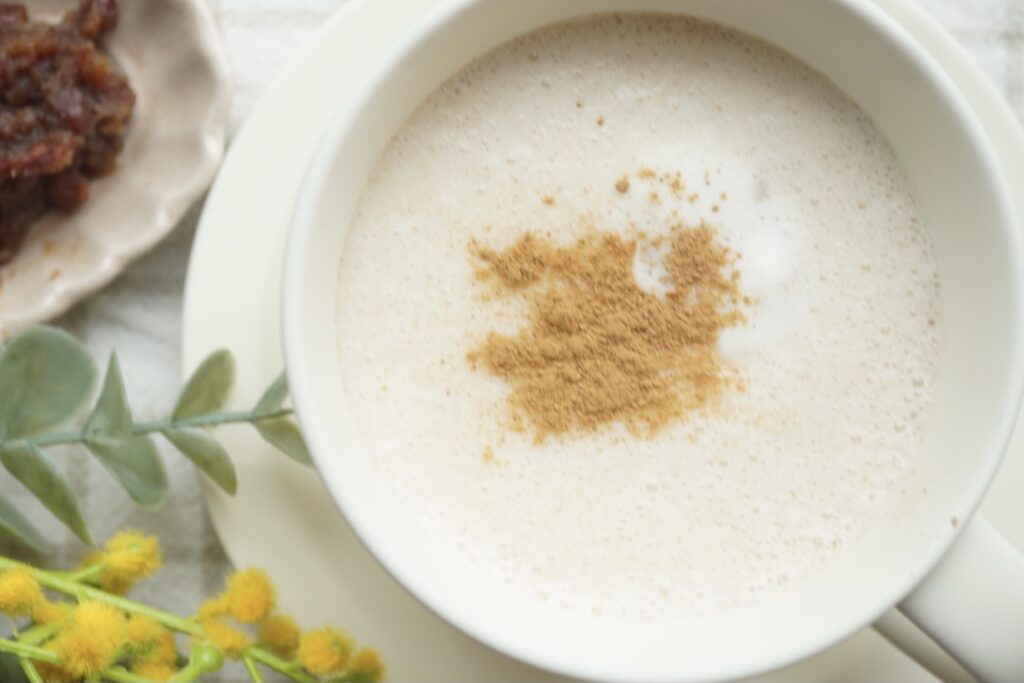 大根をコトコトしてる間に、甘酒シナモンミルクをお届けしました。