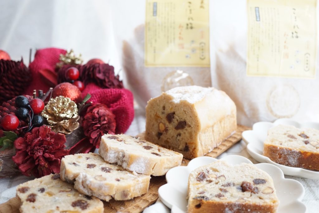 みりんスイーツレッスン、酒粕ごはんレッスンに加えて、クリスマス企画として、去年も大人気だった、こぼれ梅(みりん粕)のシュトーレン風米粉パウンドのレッスンを開催します♩